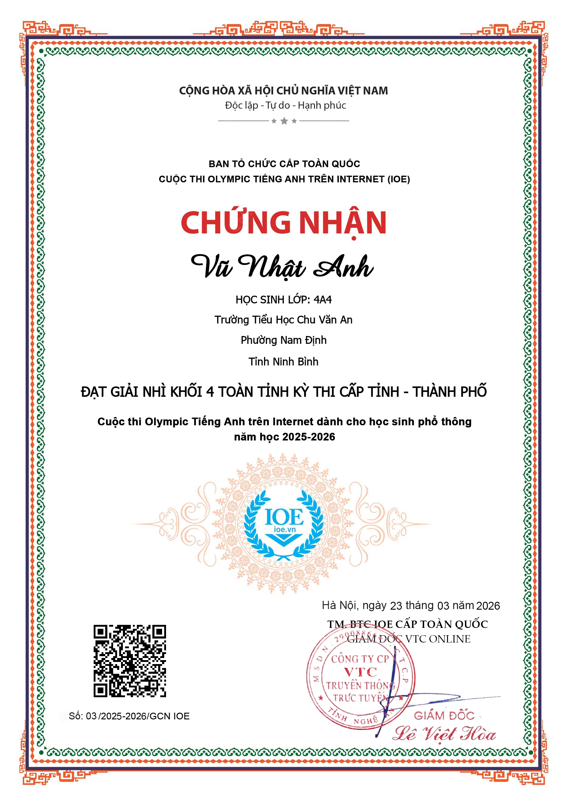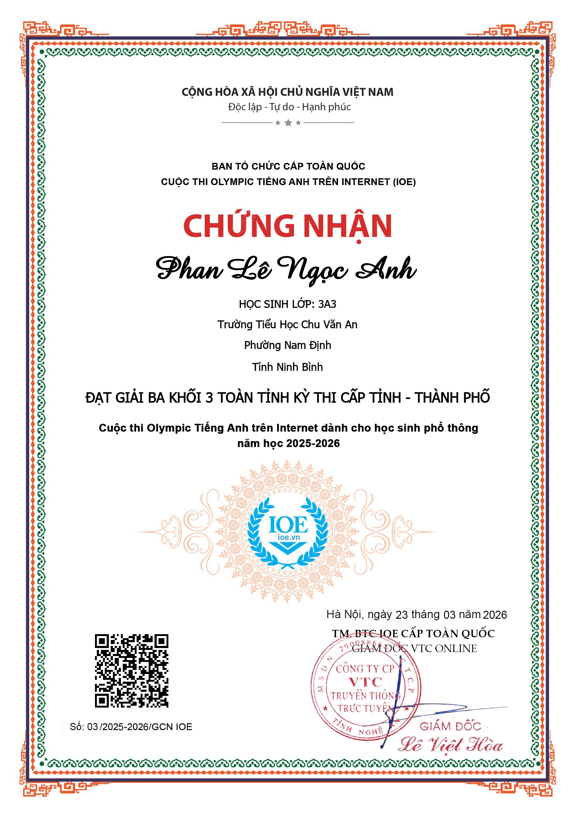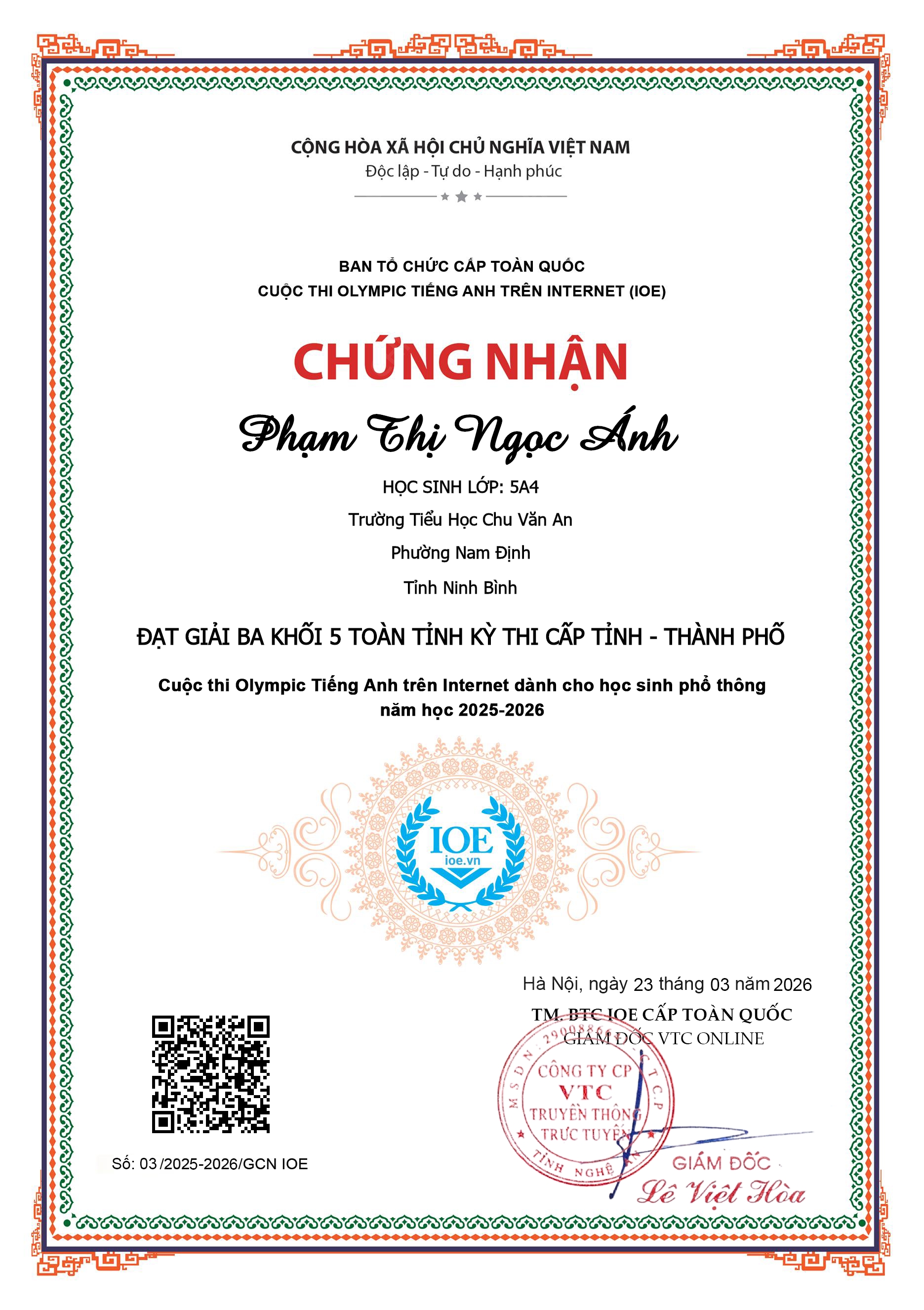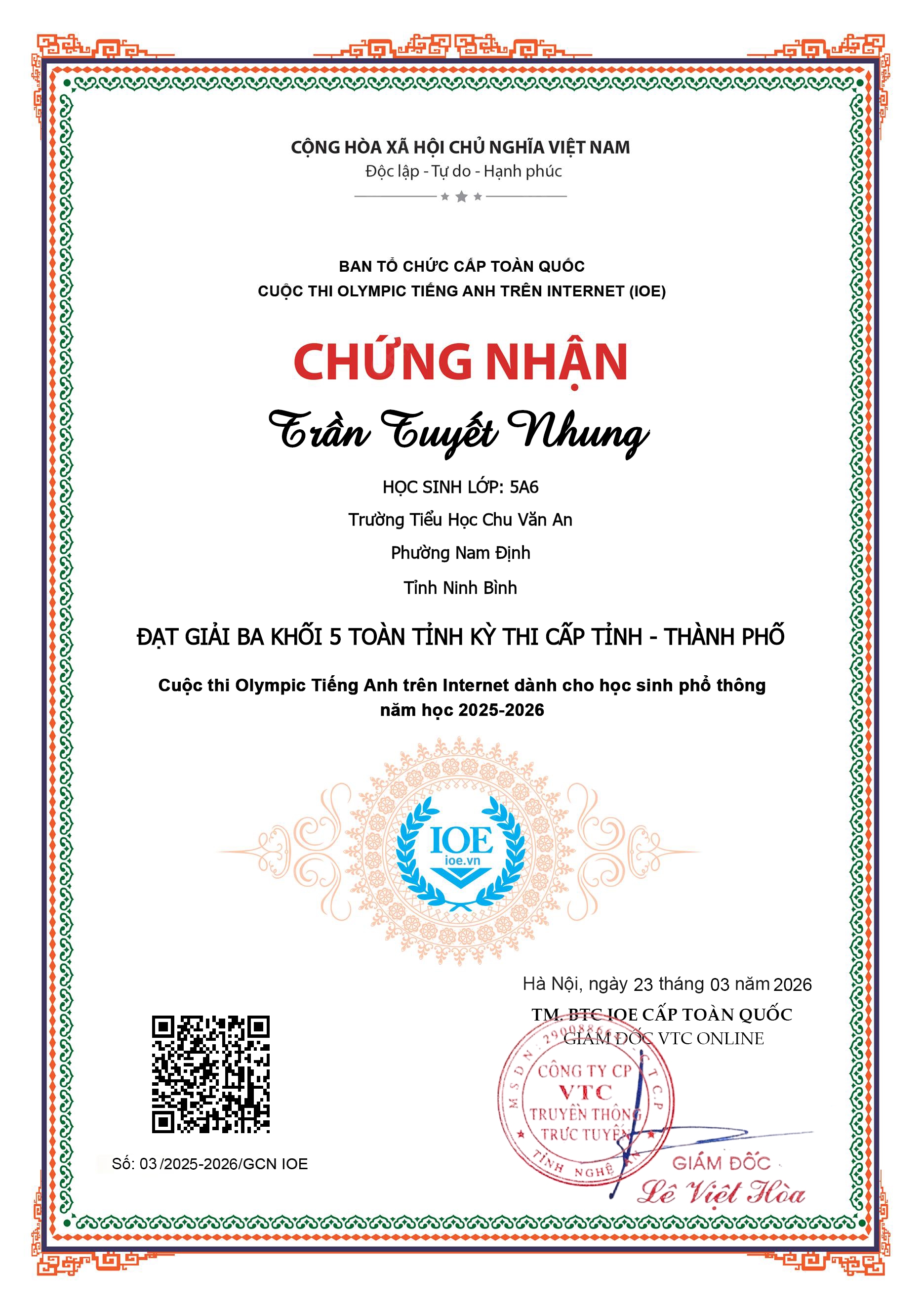 Nhà trường nhiệt liệt biểu dương và chúc mừng 27 em học sinh đã xuất sắc đạt thành tích cao và được vinh danh toàn tỉnh tại kỳ thi IOE cấp Tỉnh vừa qua. Đặc biệt, niềm tự hào được nhân đôi khi nhà trường có 2 học sinh ưu tú đã vượt qua hàng ngàn thí sinh để ghi danh vào danh sách vinh danh kỳ thi IOE cấp Quốc gia.