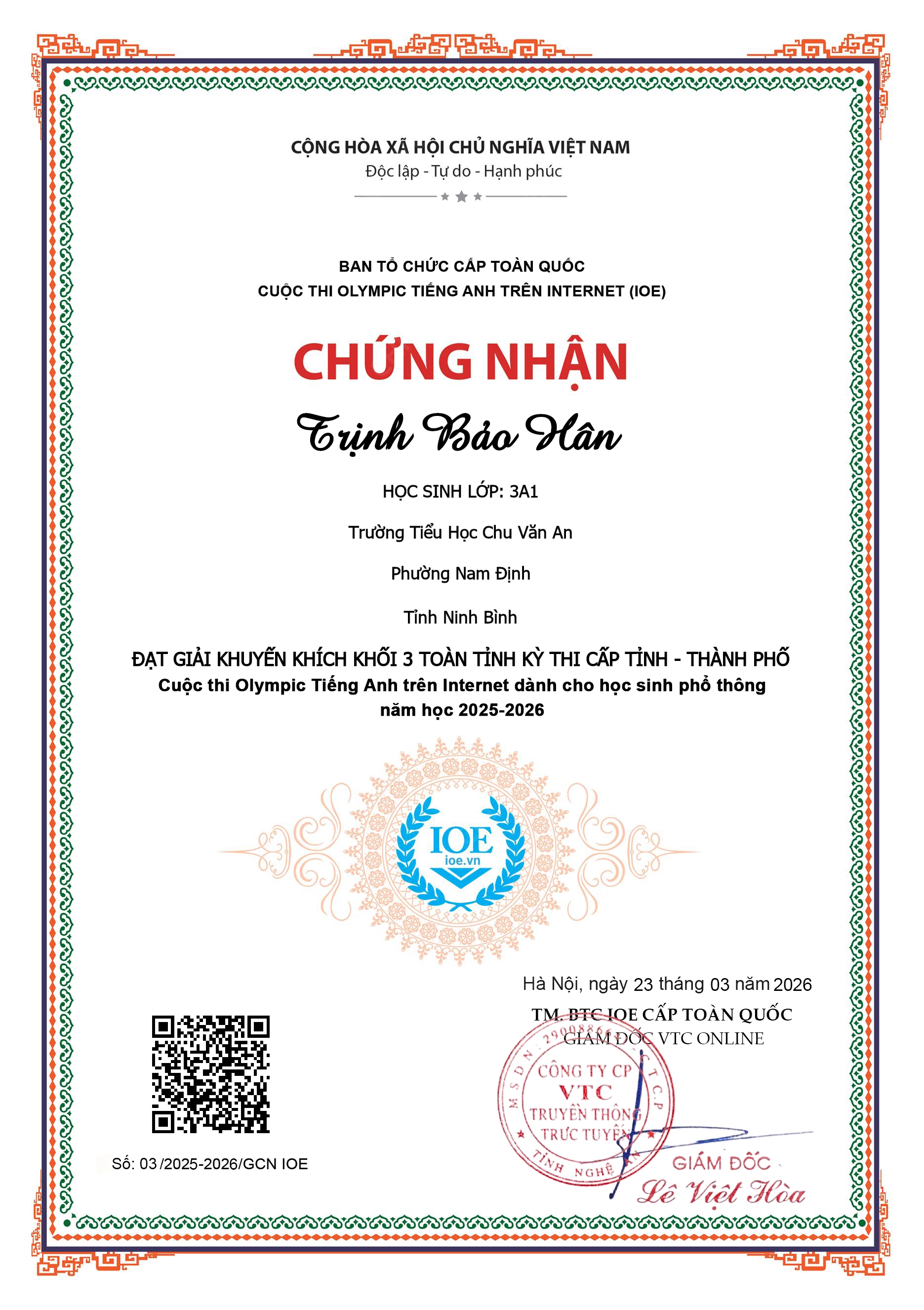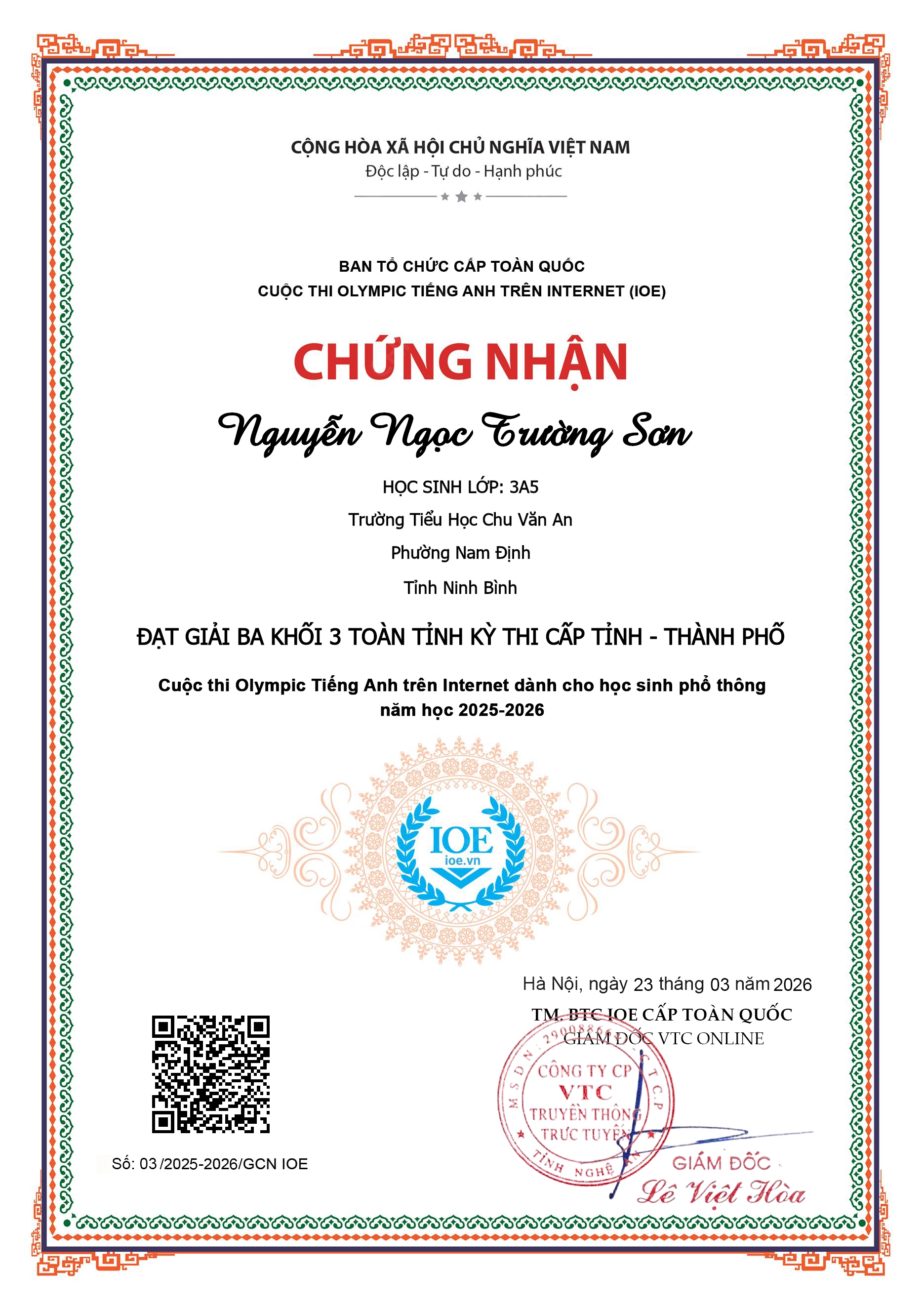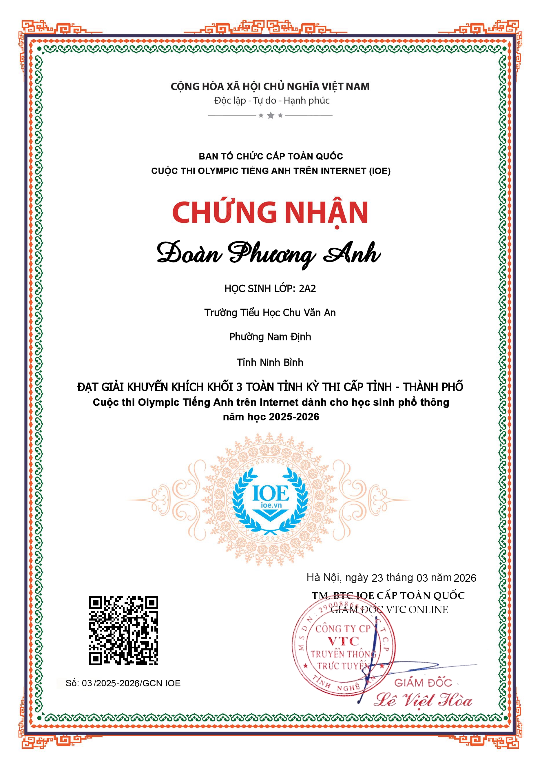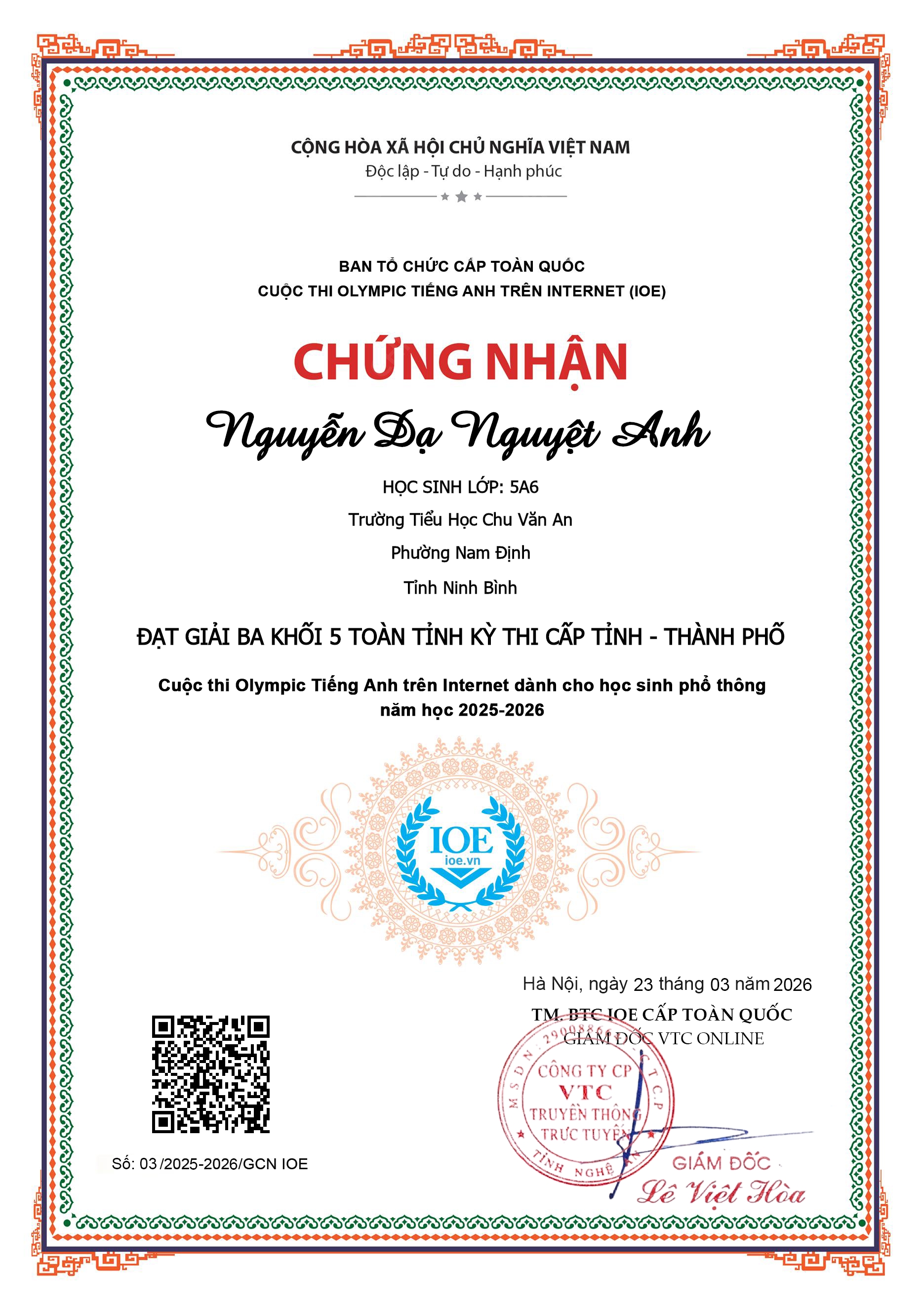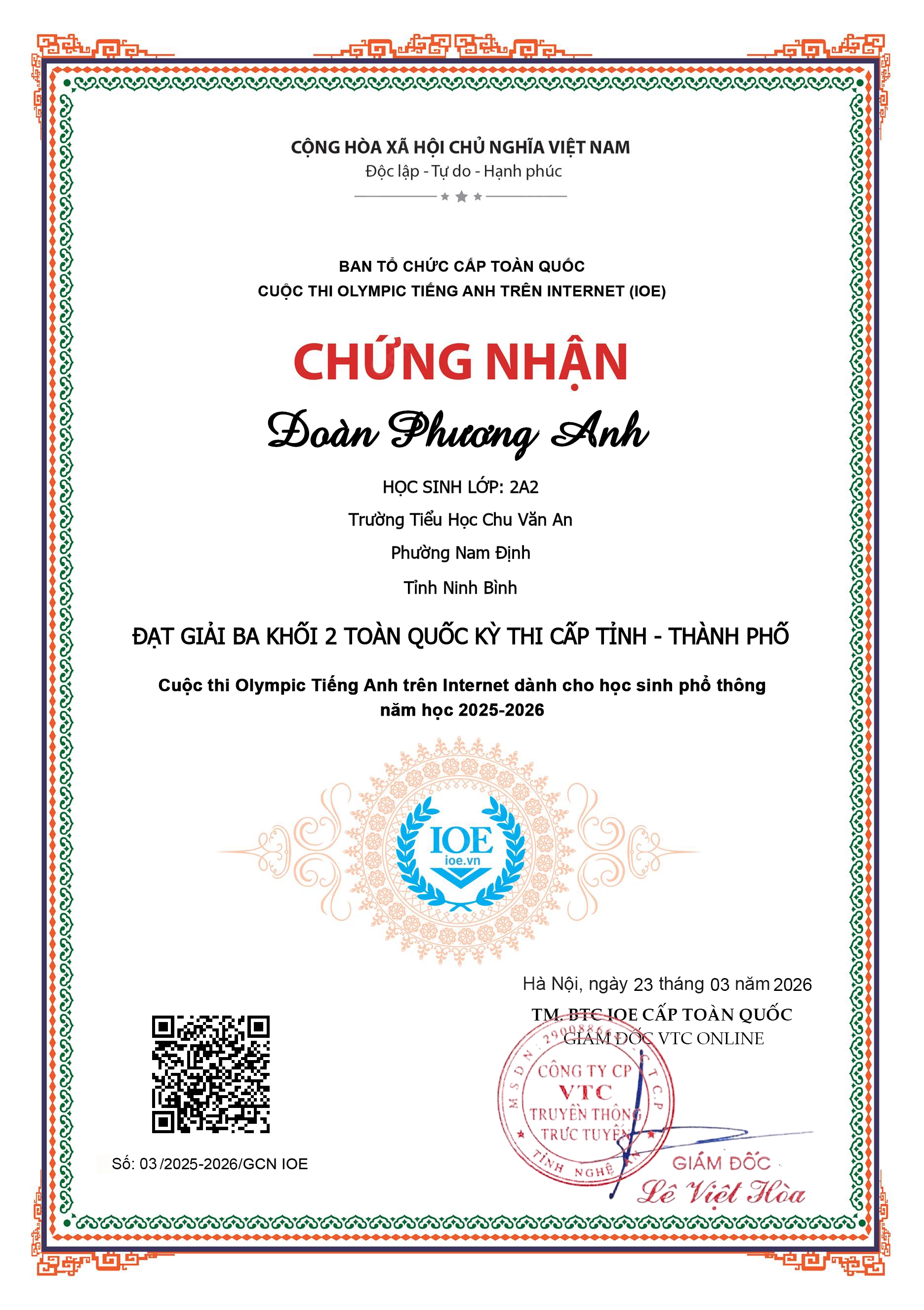 Nhà trường nhiệt liệt biểu dương và chúc mừng 27 em học sinh đã xuất sắc đạt thành tích cao và được vinh danh toàn tỉnh tại kỳ thi IOE cấp Tỉnh vừa qua. Đặc biệt, niềm tự hào được nhân đôi khi nhà trường có 2 học sinh ưu tú đã vượt qua hàng ngàn thí sinh để ghi danh vào danh sách vinh danh kỳ thi IOE cấp Quốc gia.